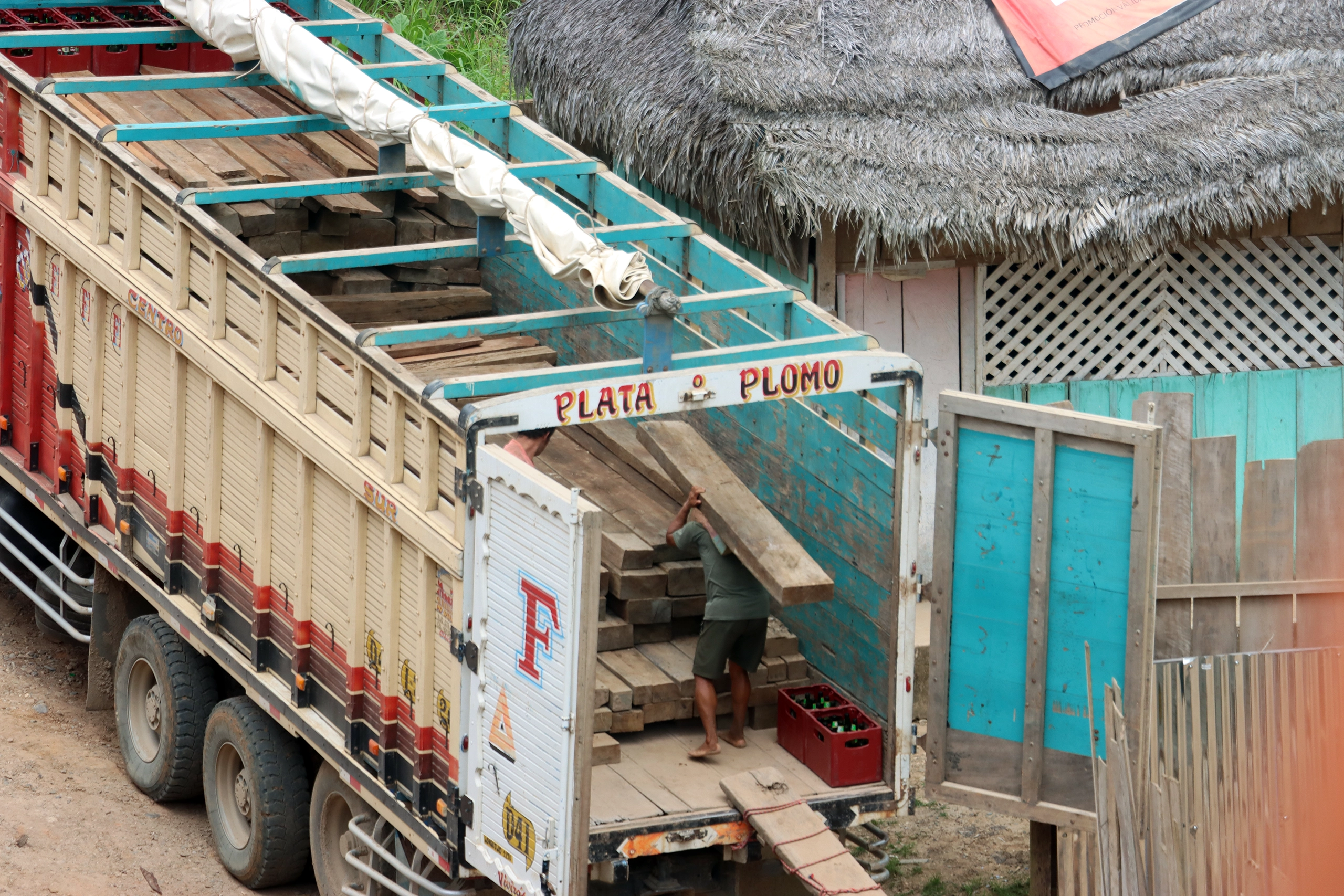 Mongabay Latam siguió la ruta de la madera extraída de la comunidad de Yutupis y pudo establecer que luego es trasladada por el río Santiago hasta cascos urbanos como Nieva. Allí se carga en camiones para luego ser llevada a las ciudades de Lambayeque y Piura.